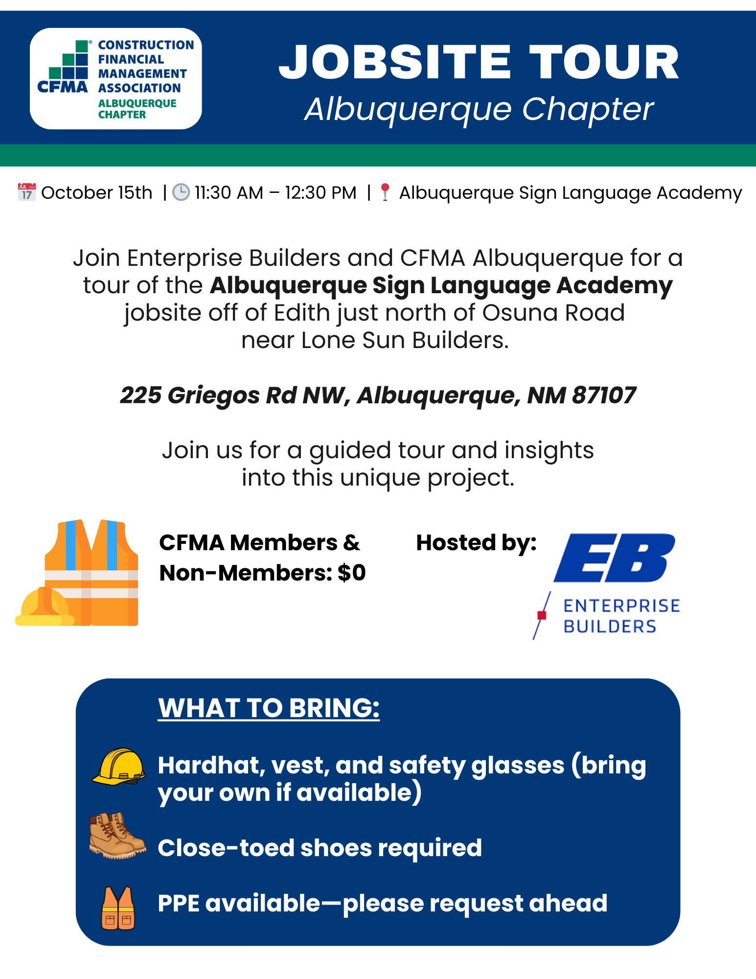 Oct 15, 2025 - 11:30 AM (MT) - Enterprise Builders at the Albuquerque Sign Language Academy jobsite off of Edith just north of Osuna Rd by Lone Sun Builders. 225 Griegos Rd NW, Albuquerque, NM 87107